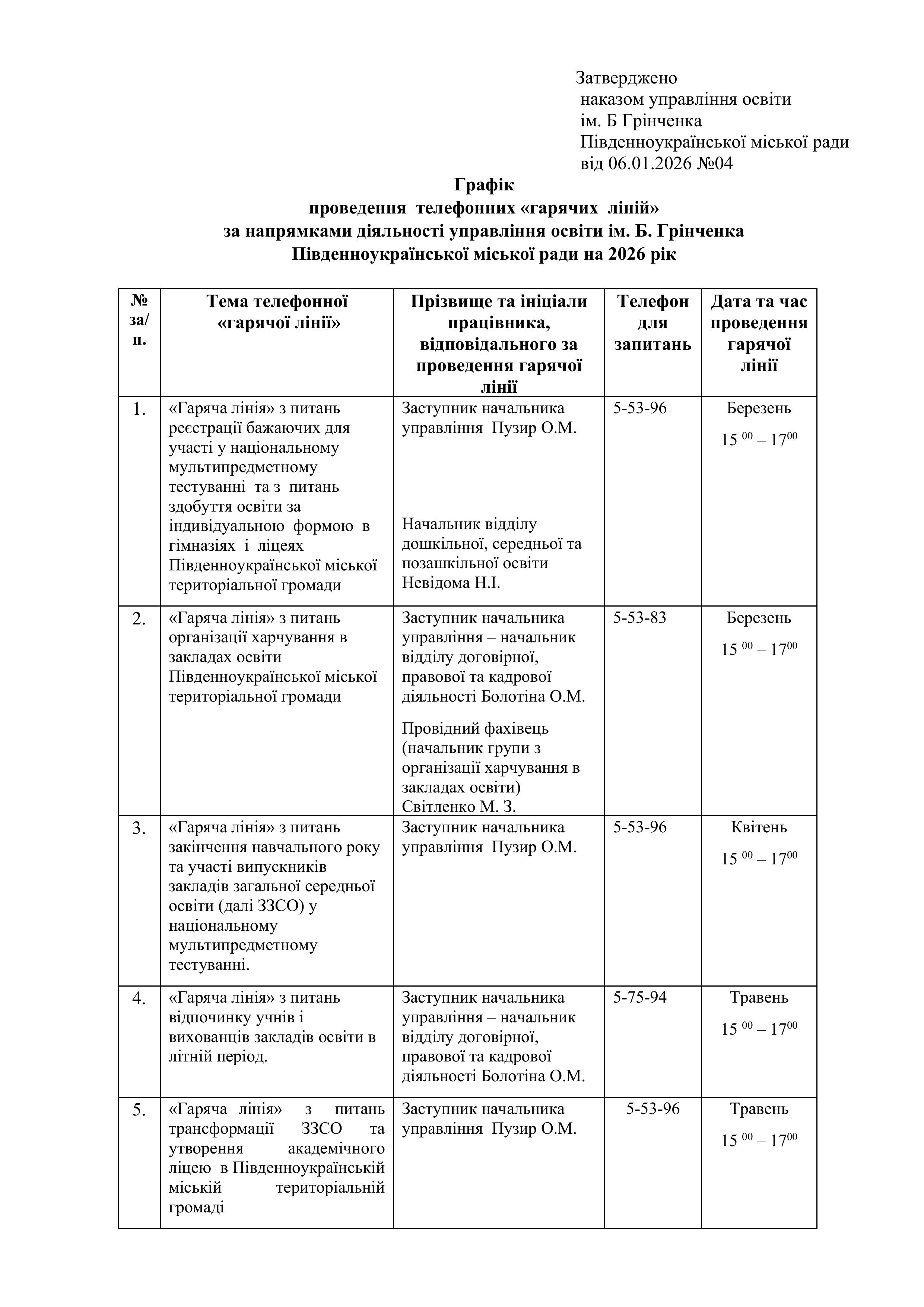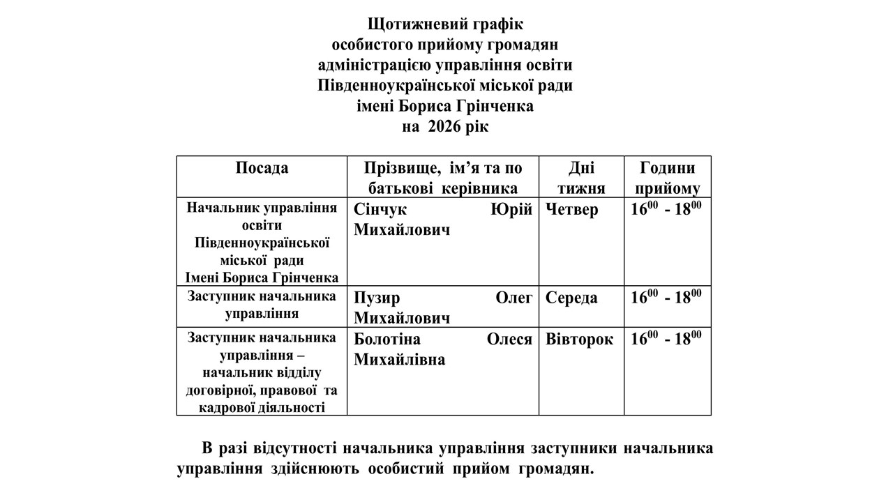 графік прийому громадян ВО м. Південноукраїнська